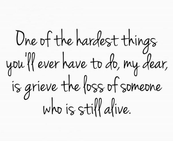 The thing is – I was grieving the loss of my mother, because for all intents and purposes she was gone…but she was physically still there. She was eating and breathing and sleeping and destroying. As it turns out, it’s really hard to grieve this kind of loss when the person you miss is standing there in the flesh. It felt like no one could know my grief except for maybe my siblings, but we all experienced this grief so differently. On the outside, it didn’t seem like we were dealing with a catastrophic loss, which could be confusing. Suffering the loss of a loved one is unimaginably hard. But suffering their loss when no one else can see it – that felt impossible. After all…she’s right there.