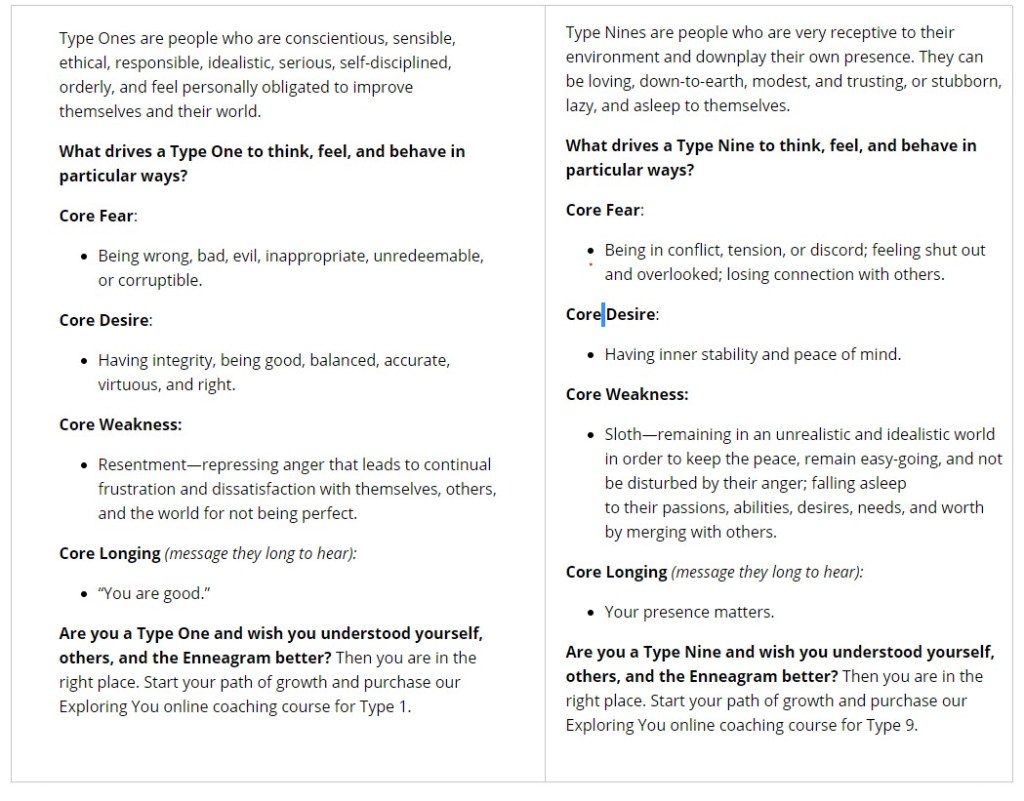 Not to go down this rabbit hole too much – but on the website for Your Enneagram Coach, a Ones and Nines are described in the following way: https://www.yourenneagramcoach.com/type1